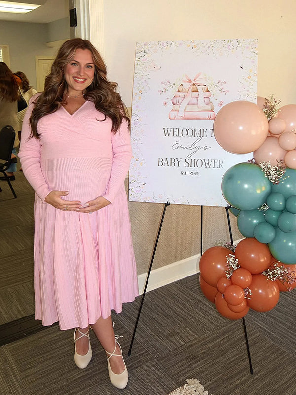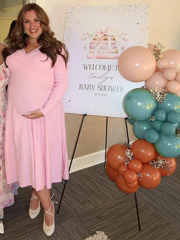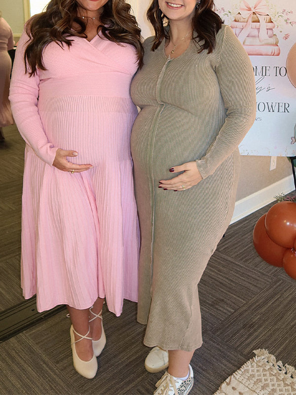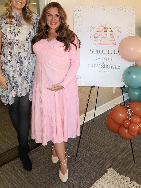 Momyknows Pink Pleated Baby Girl Shower Maternity Maxi Sweater Dress