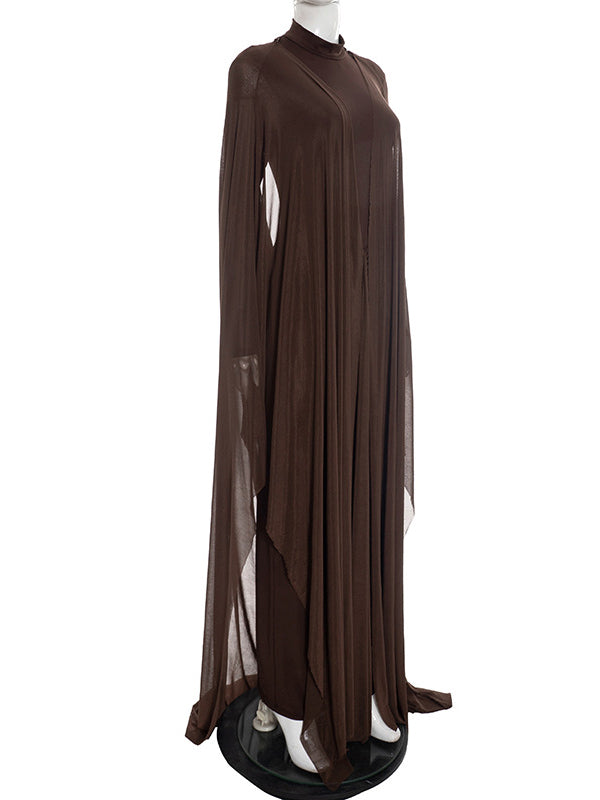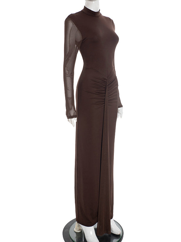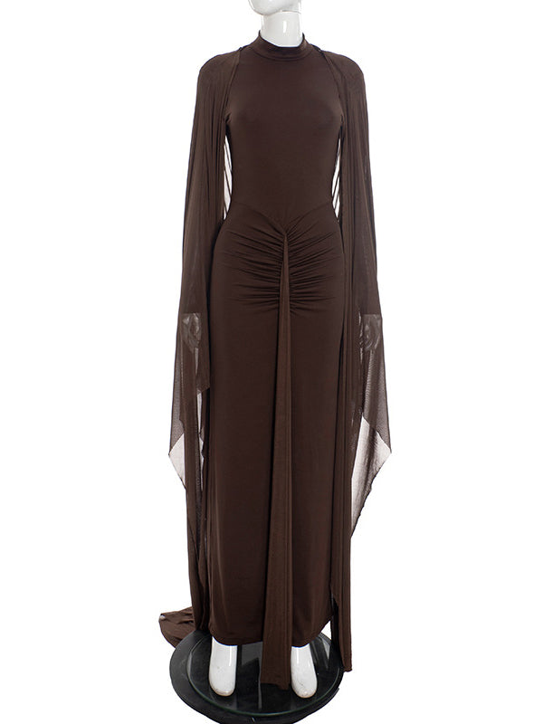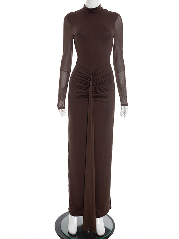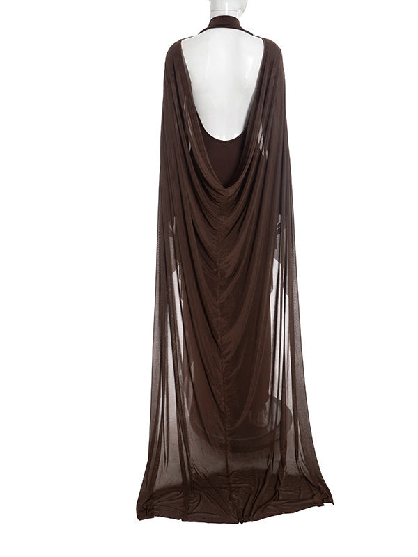 Momyknows Brown Mesh Ruched Ruffle Draped Two Piece Set Maternity Maxi Dress