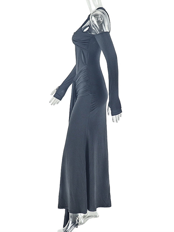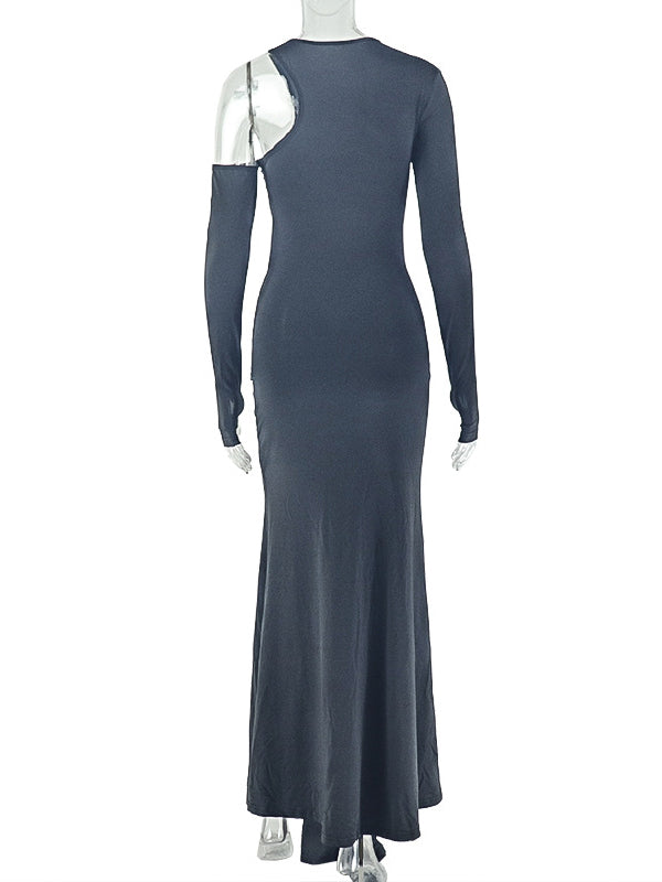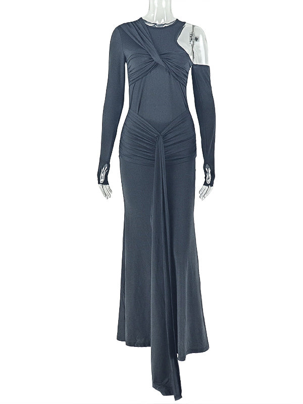 Momyknows Irregular One Shoulder Cut Out Ruched Draped Bodycon Maternity Maxi Dress