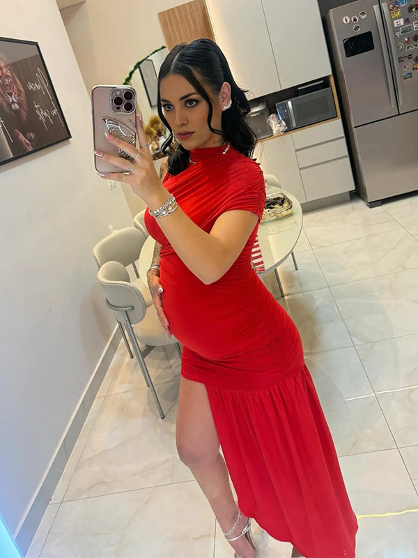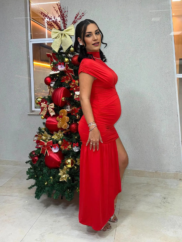 Momyknows Red Ruched Draped One Shoulder Photoshoot Maternity Mini Dress