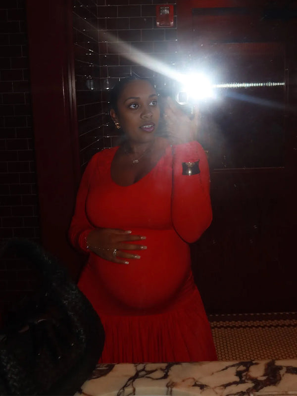 Momyknows Red Solid Color Party Maternity Maxi Dress