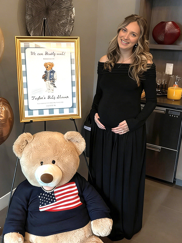 Momyknows Off Shoulder Ruched Backless Spliced Maternity Baby Shower Maxi Dress