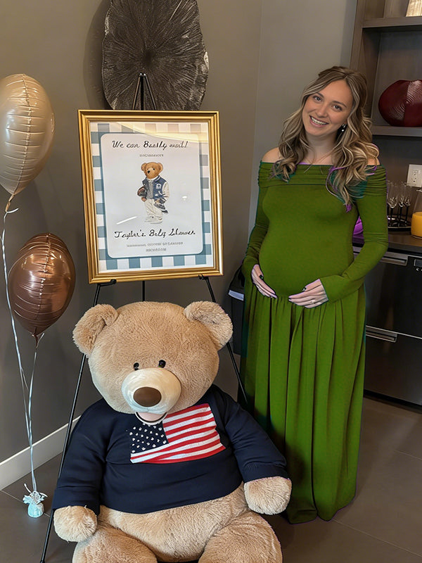 Momyknows Off Shoulder Ruched Backless Spliced Maternity Baby Shower Maxi Dress