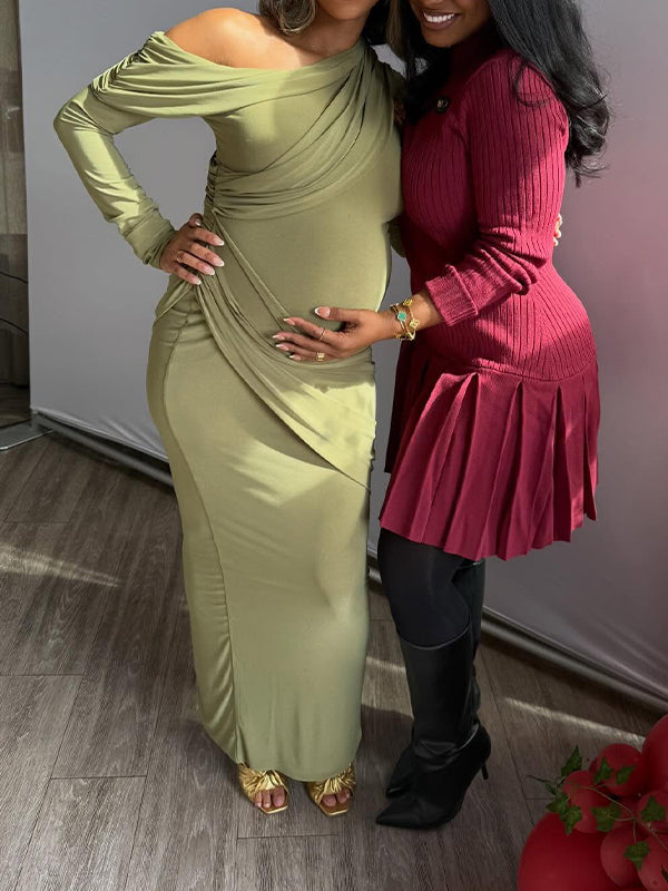 Momyknows Green One Shoulder Ruched Baby Shower Maternity Maxi Dress