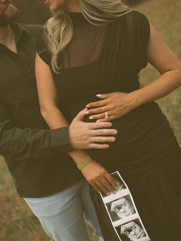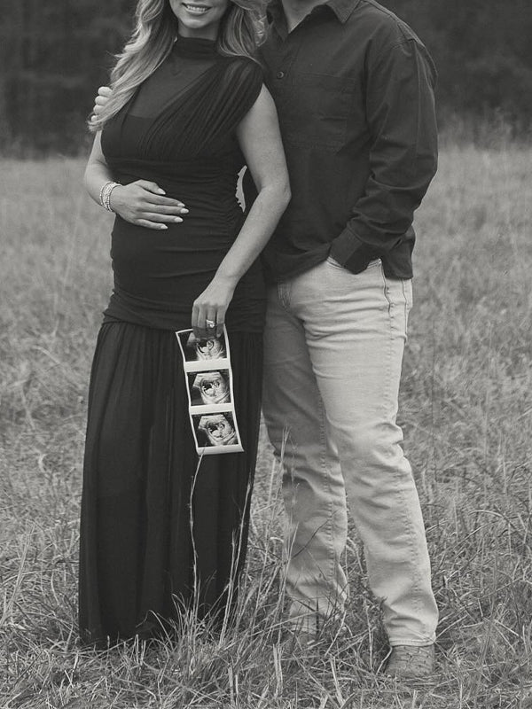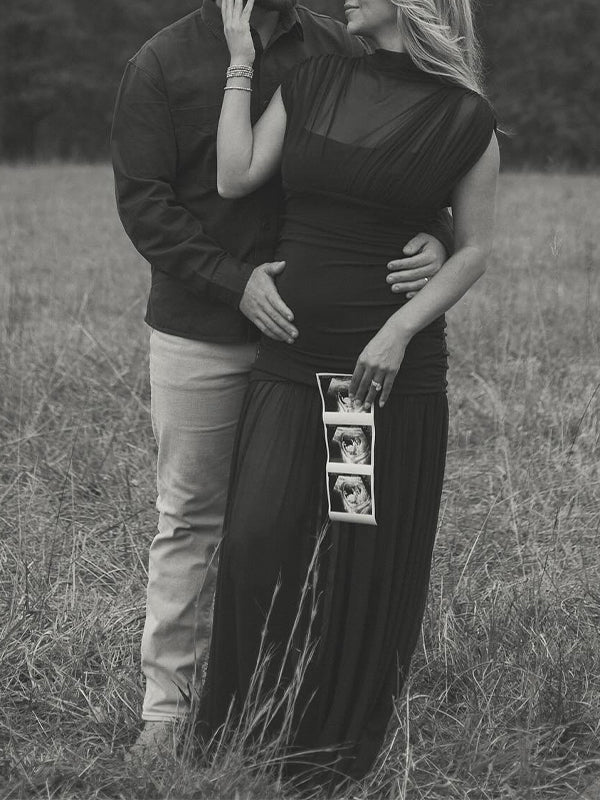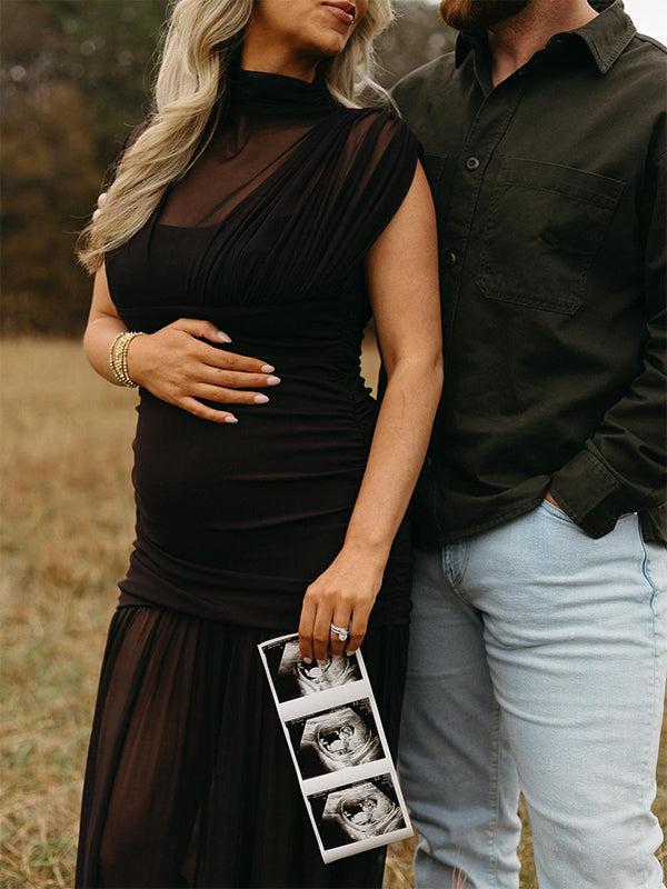 Momyknows Black Ruched Grenadine Sheer Photoshoot Maternity Maxi Dress