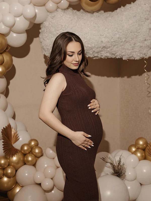 High Neck Sleeveless Bodycon Maternity Baby Shower Maxi Dress
