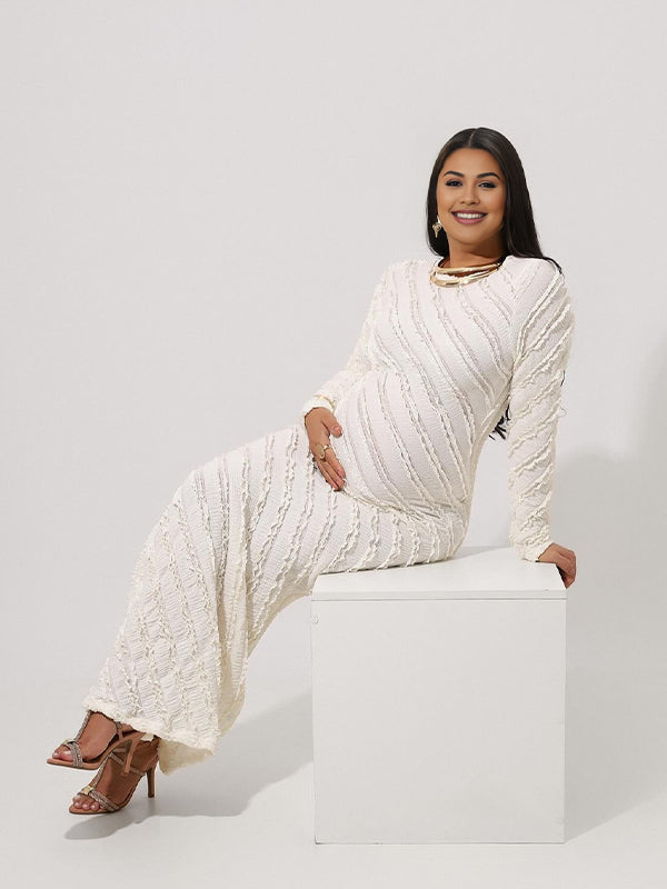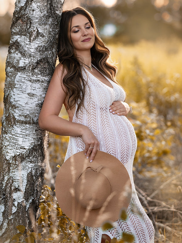 Momyknows White Knit Cut Out Backless Photoshoot Maternity Maxi Dress