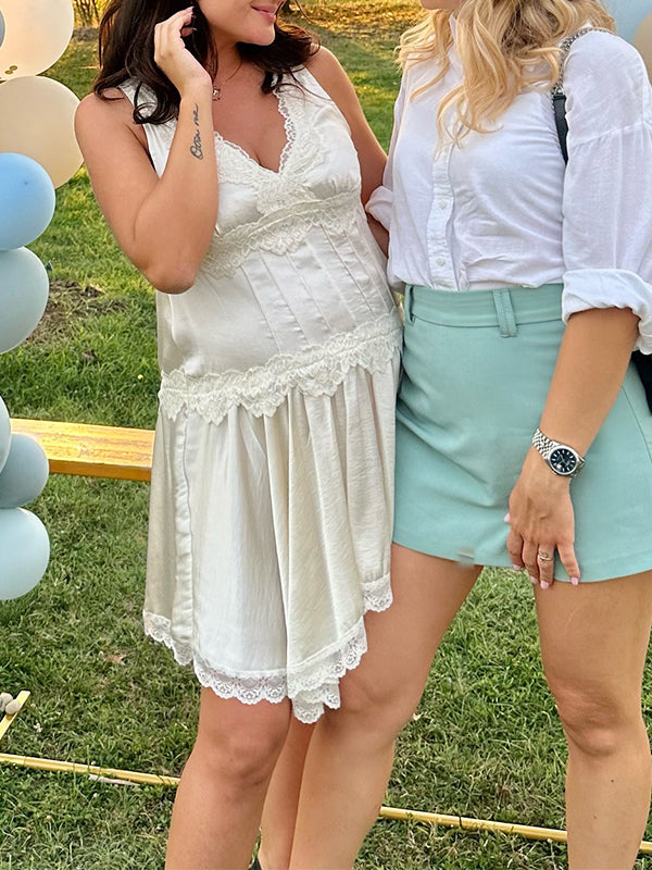 Momyknows White Lace Baby Shower Maternity Mini Dress