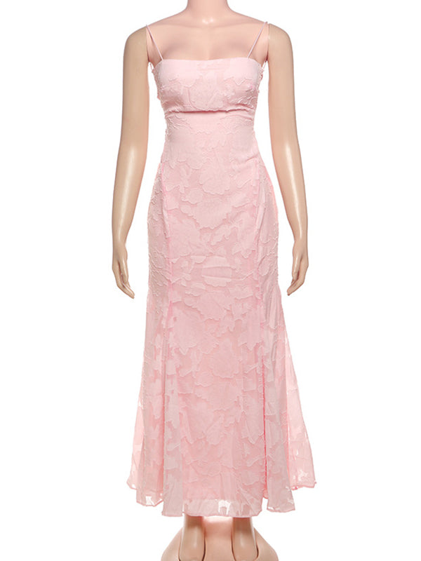 Momyknows Pink Burnout Lace Cami Lace Up Back Maternity Maxi Dress