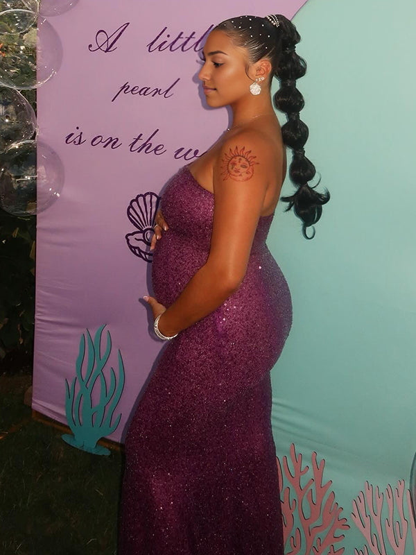 Momyknows Sparkle Sequin Bandeau Strapless Bodycon Maternity Maxi Dress