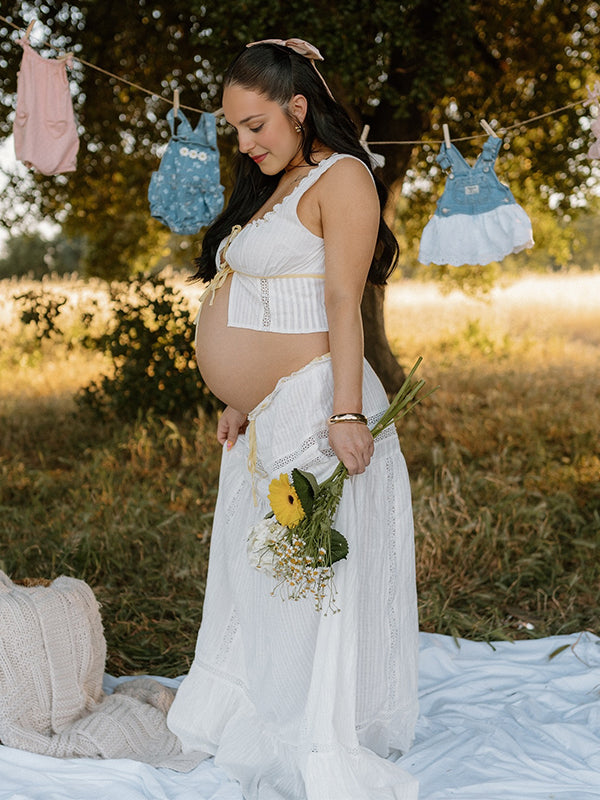 Momyknows White 2 Pieces Lace Cut Out Photoshoot Maternity Maxi Dress