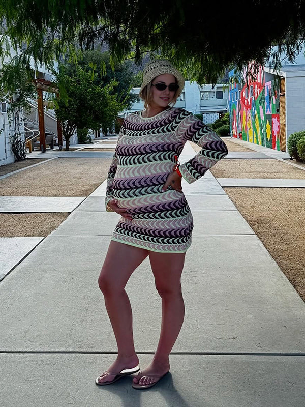 Momyknows Striped Hit Color Vocation Maternity Mini Dress