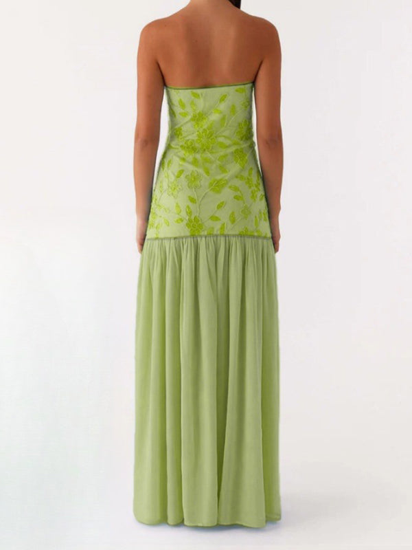 Decoration: Ruffle, falbala, bandeau, floral, strapless, beaded, side slit
