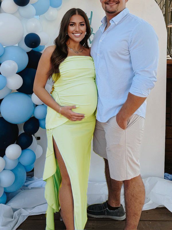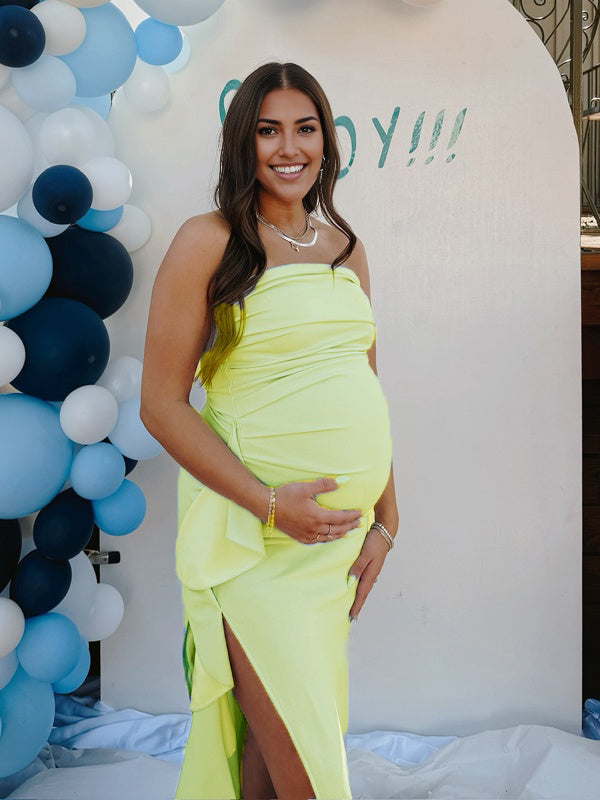 Momyknows Light Yellow Side Slit Irregular Maternity Baby Shower Maxi Dress