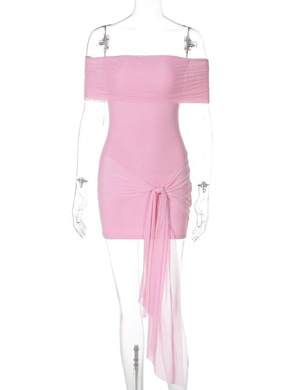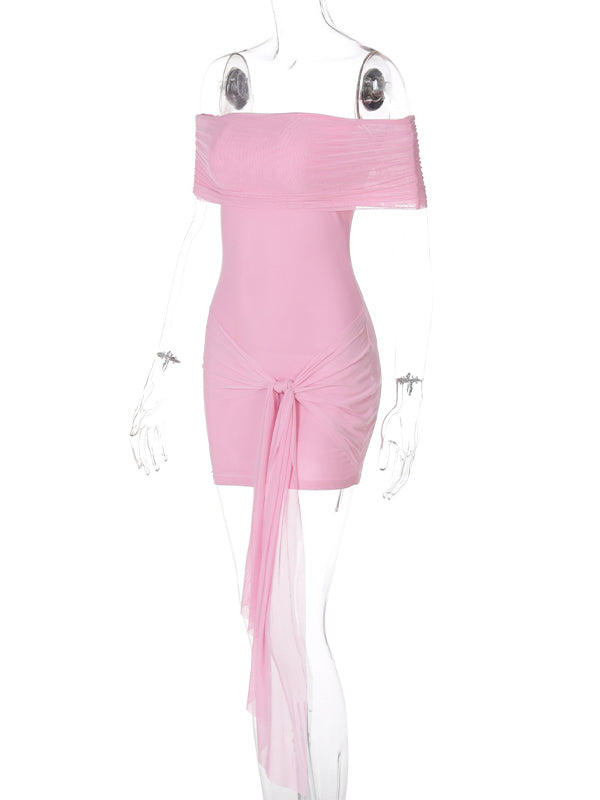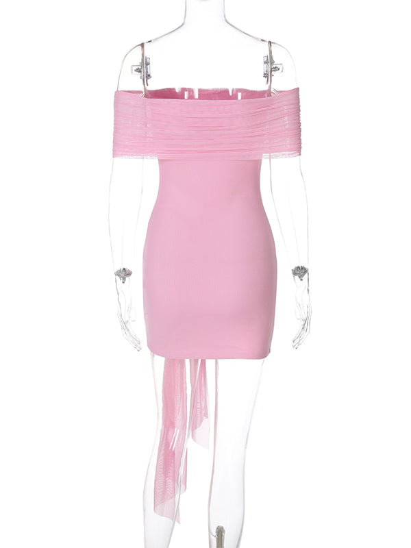 Momyknows Pink Off Shoulder Draped Baby Girl Shower Maternity Mini Dress