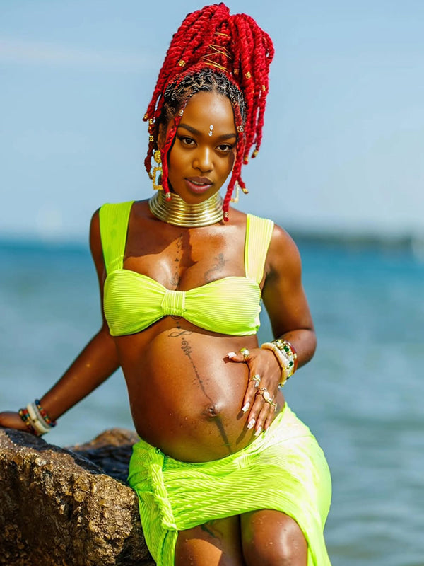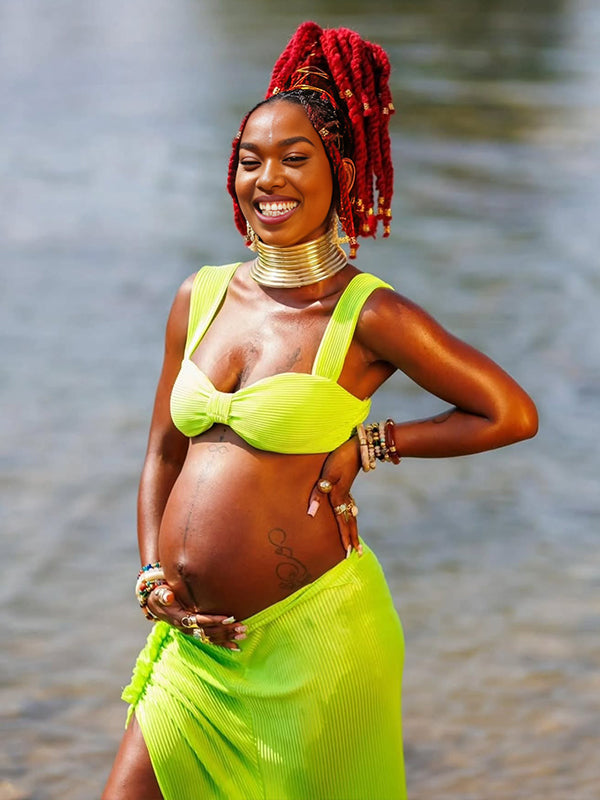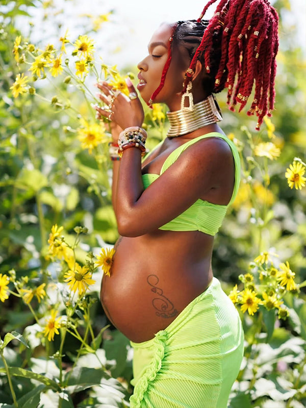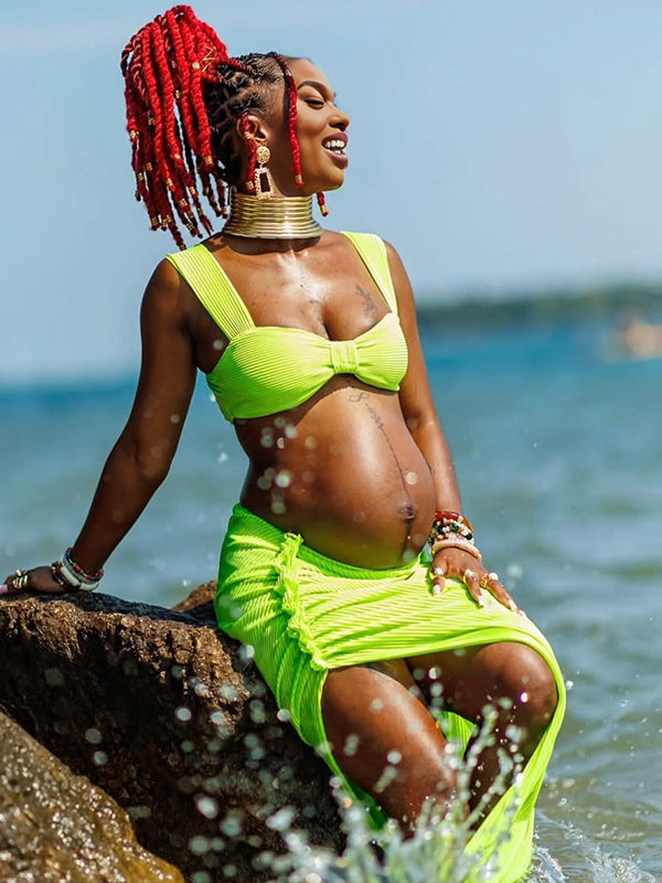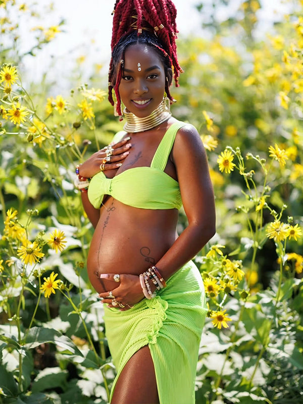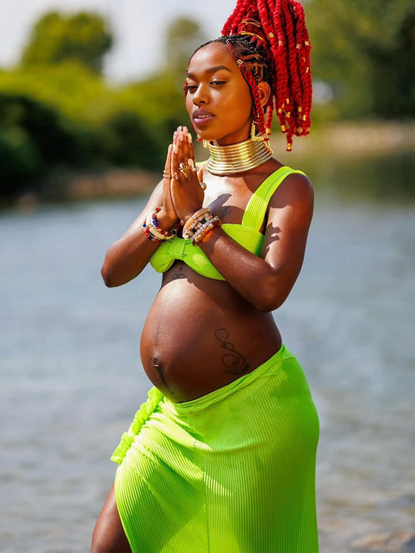 Momyknows Spaghetti Strap Side Slit Ruched Two Piece Maternity Photoshoot Maxi Dress