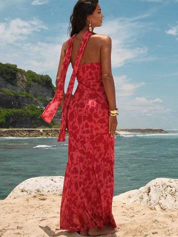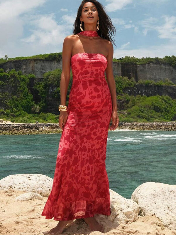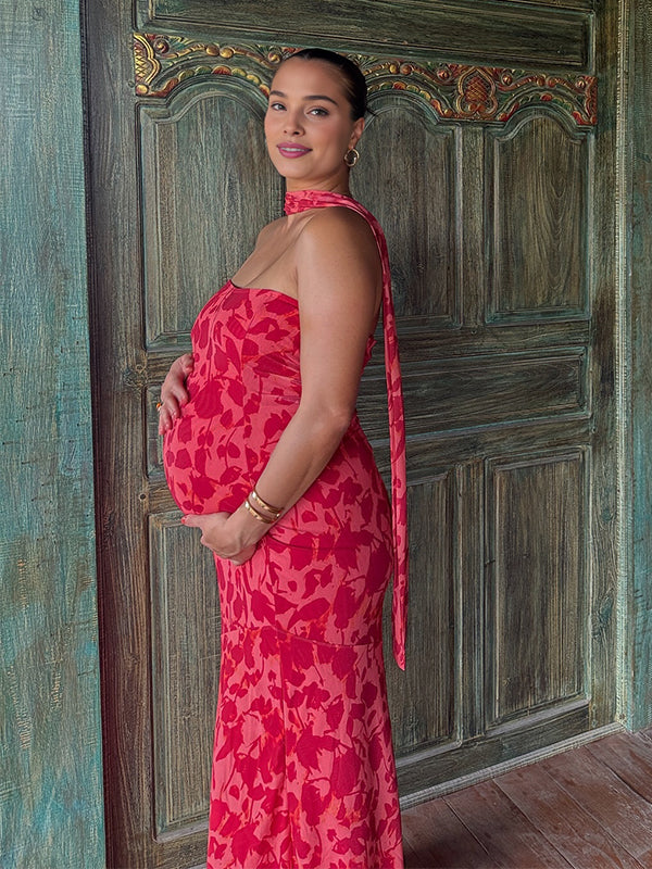 Watermelon Red Leopard Wrap Mermaid Banquet Maternity Maxi Dress