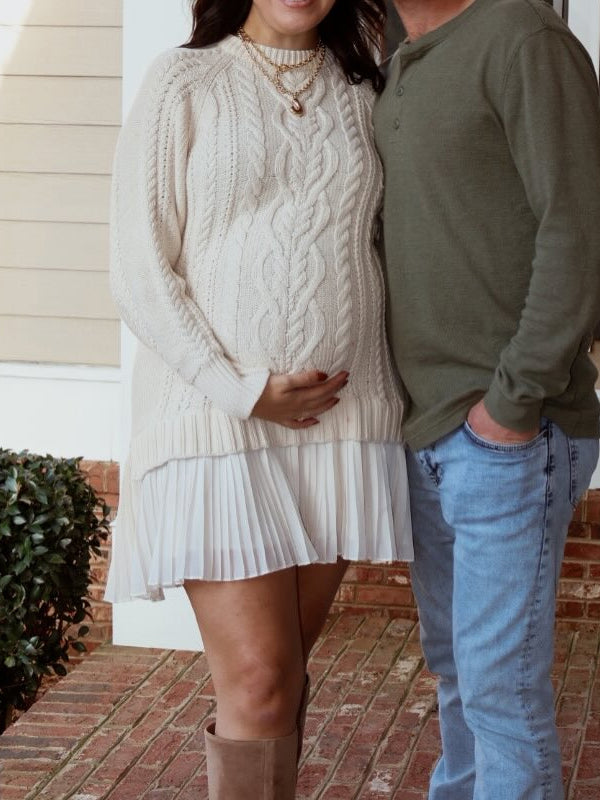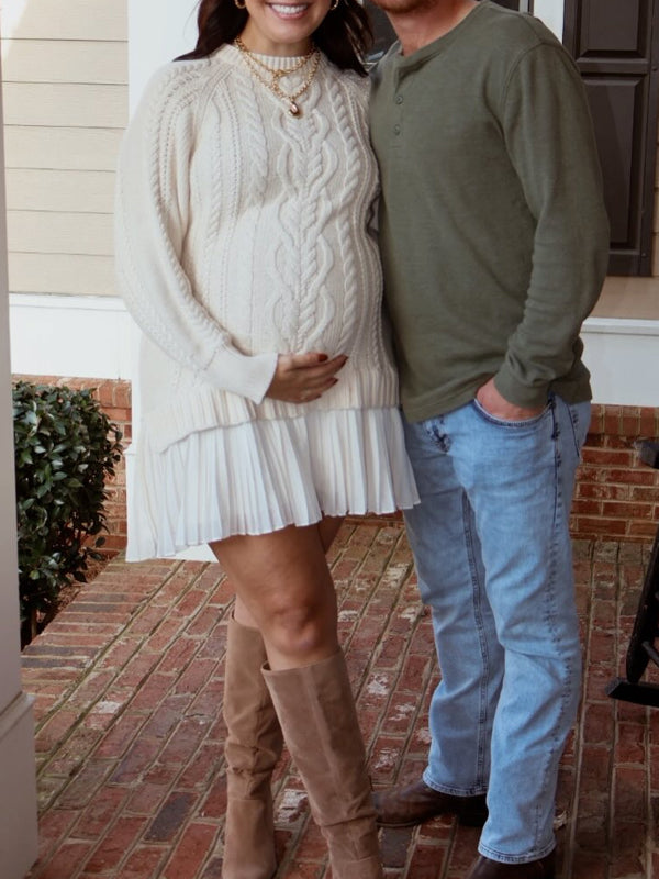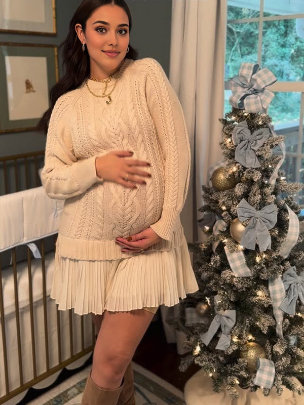 Momyknows Apricot Crochet Splicing Grenadine Maternity Sweater Photoshoot Mini Dress