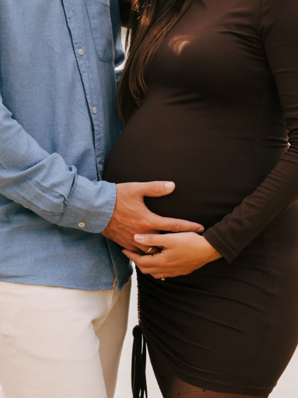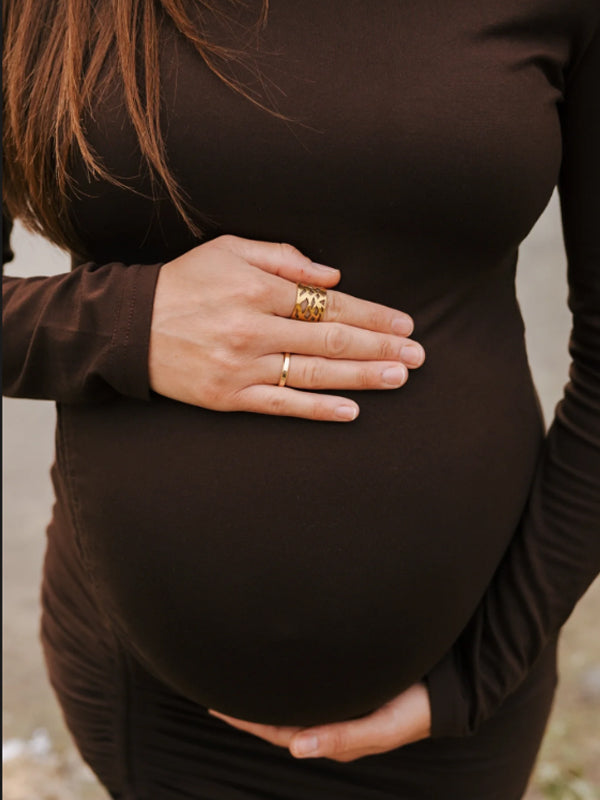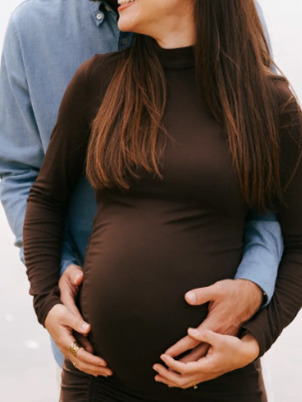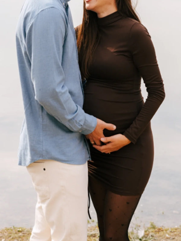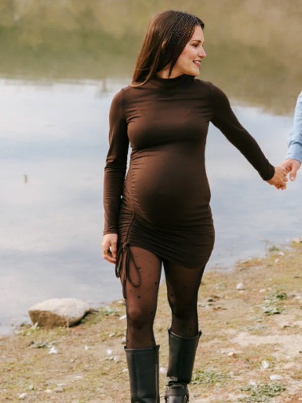 Momyknows Coffee Drawstring Ruched Bodycon Maternity Photoshoot Mini Dress