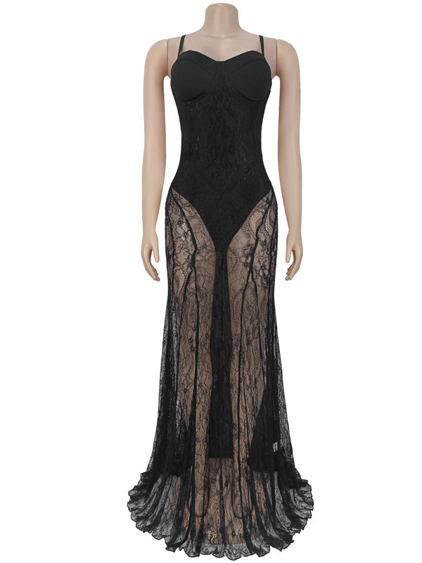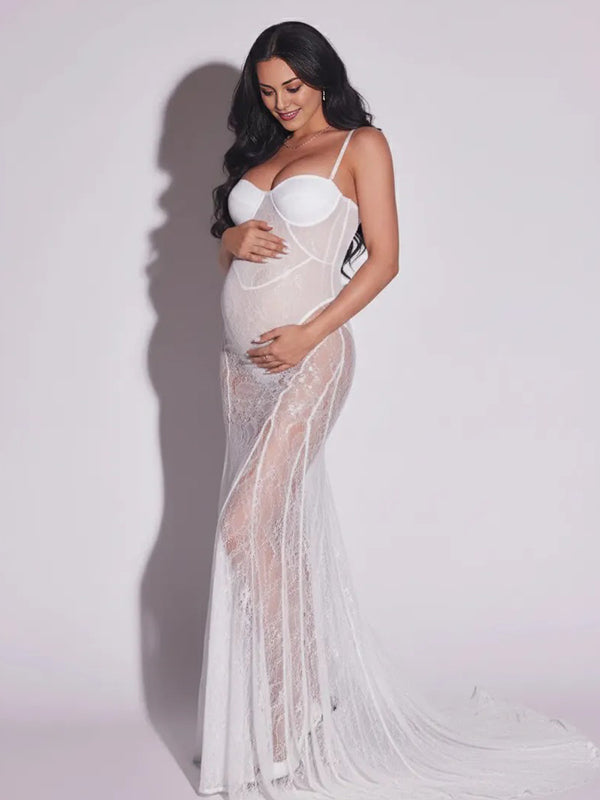 Momyknows Lace Bodice Cami Big Swing Sheer Maternity Maxi Dress