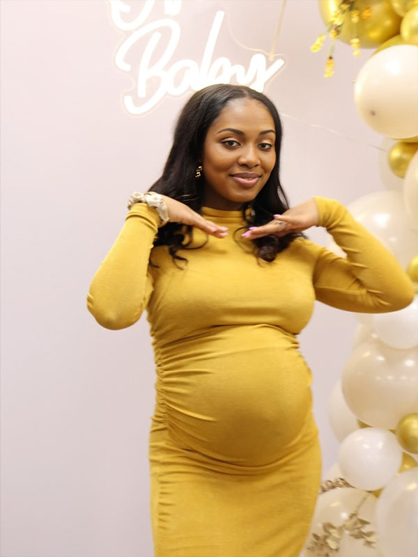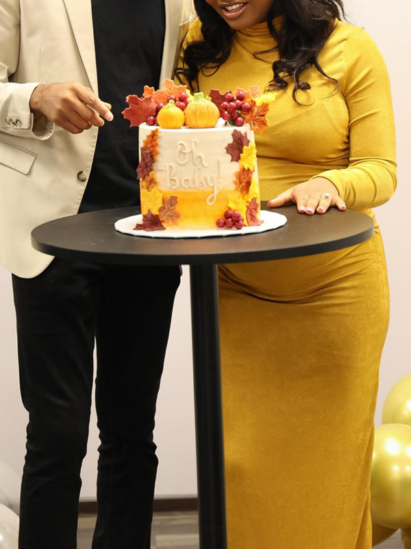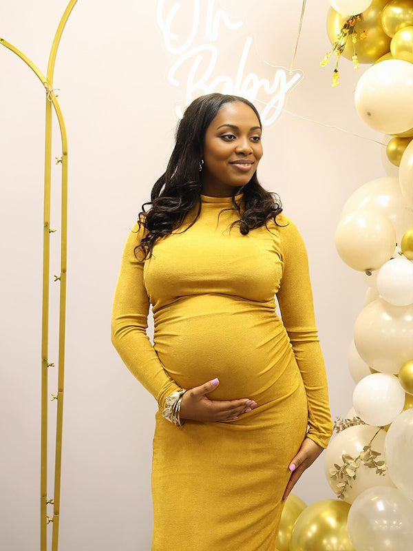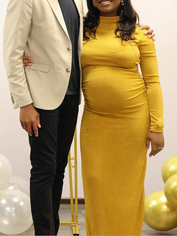 Momyknows Orange-yellow High Neck Bodycon Maternity Baby Shower Maxi Dress