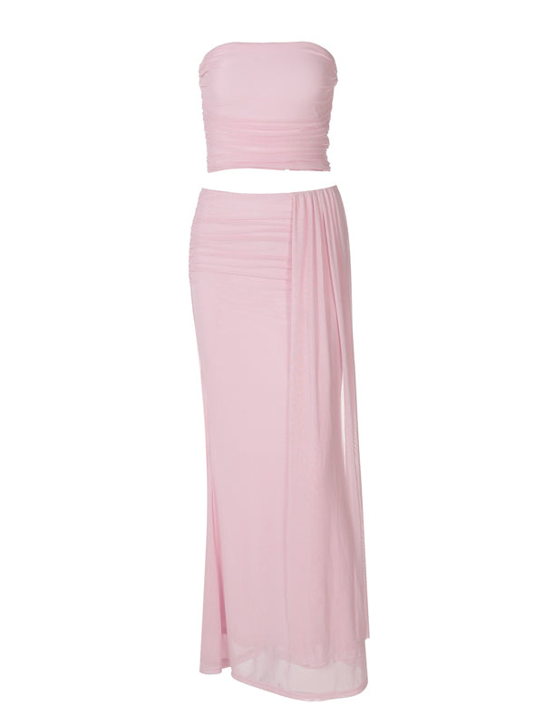 Decoration: Mesh, ruched, bandeau, crop, draped, two piece set, strapless
