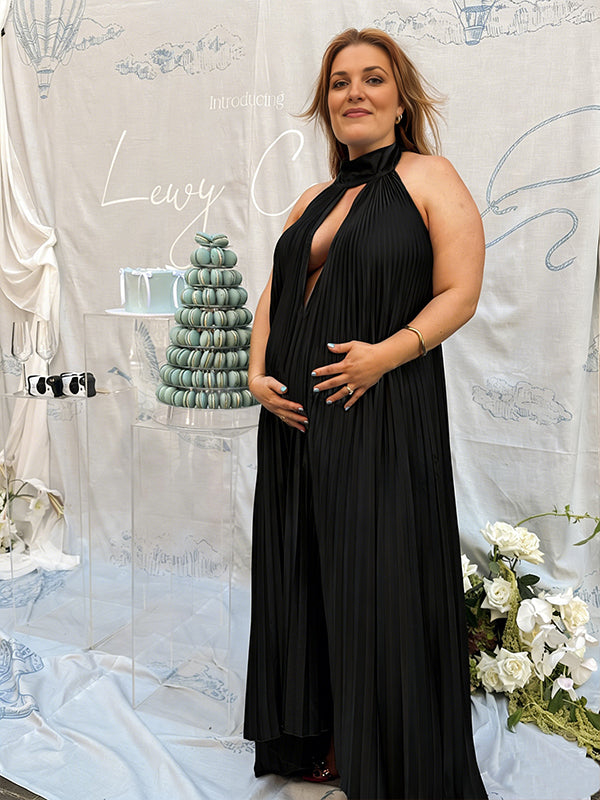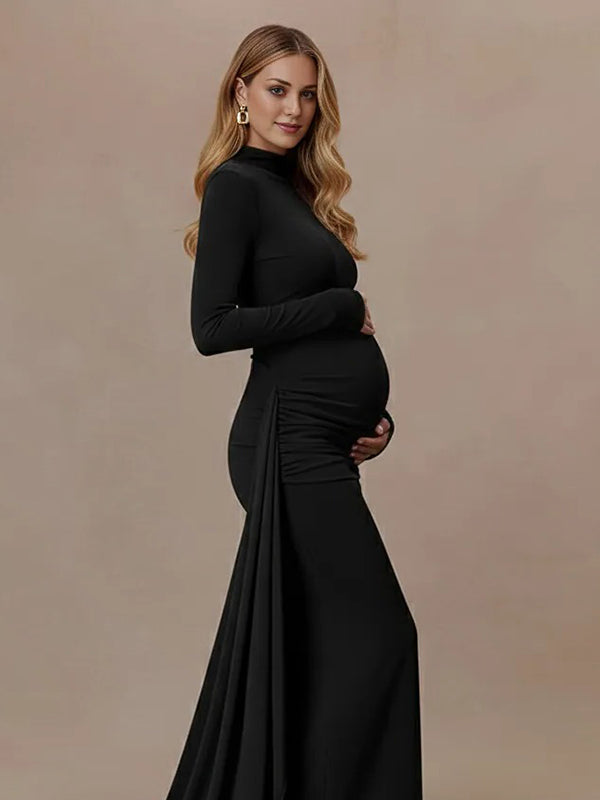 Momyknows Irregular Ruched Draped High Neck Bodycon Elegant Maternity Maxi Dress