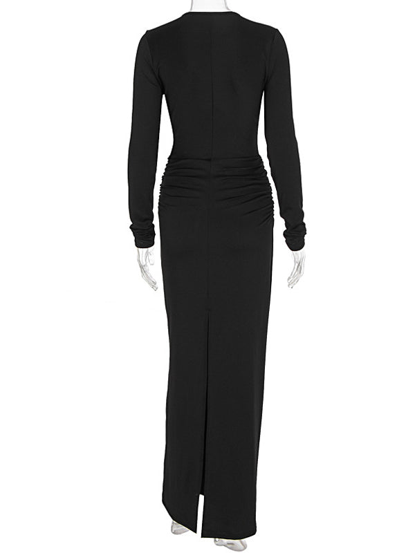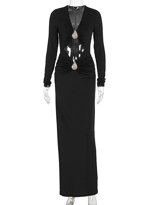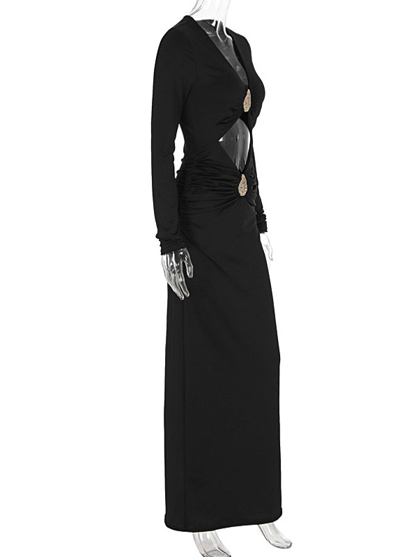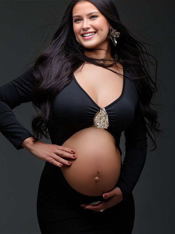 Momyknows Black Metal Hardwear Cut Out Crop Bodycon Maternity Maxi Dress