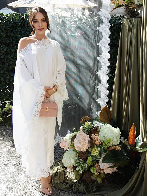 Momyknows White Lace Ruffle One Shoulder Cape Two Piece Set Maternity Maxi Dress