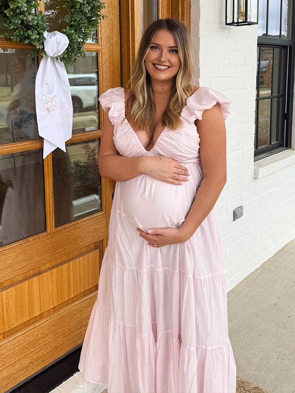 Momyknows Pink Ruffle Ruched Big Swing Maternity Maxi Dress