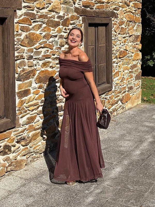 Momyknows Chic Mesh Off Shoulder Draped Cocktail Maternity Maxi Dress