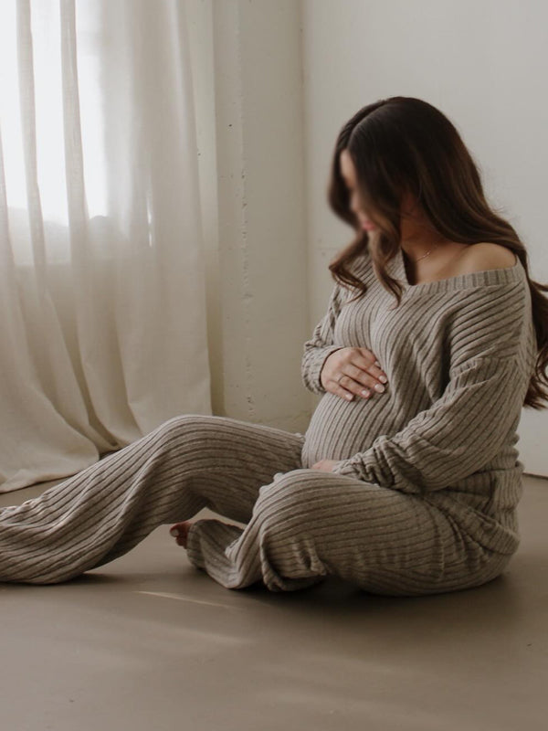 Momyknows Khaki Leopard Two piece Streetwear Maternity Pullover Sweater
