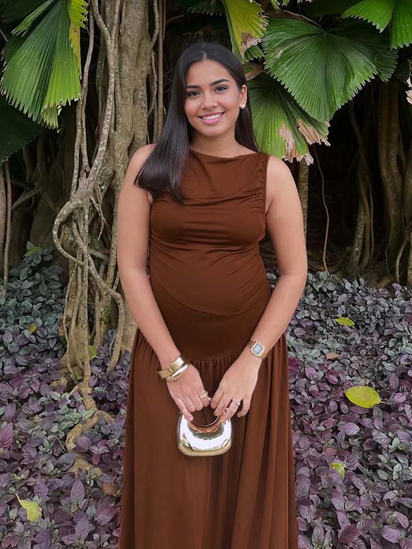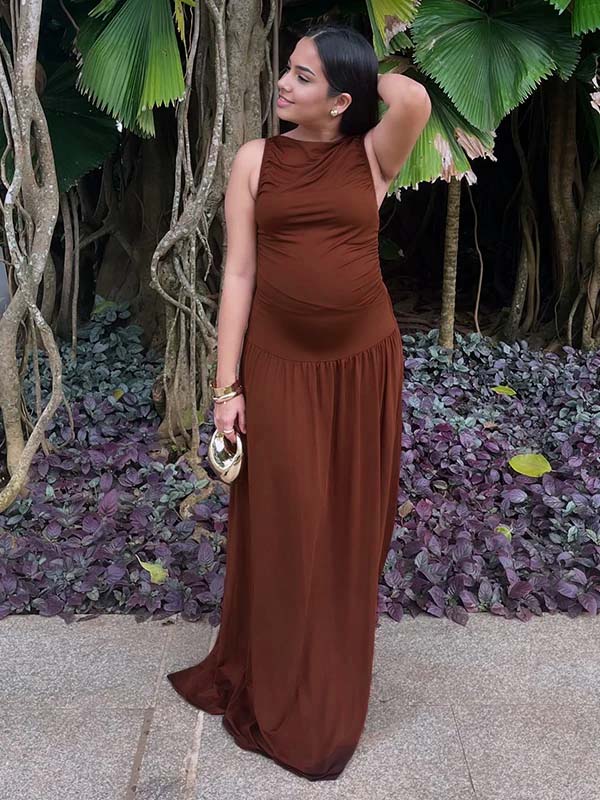 Momyknows Brown Ruched Knot Draped High Neck Sleeveless Bodycon Elegant Maternity Photoshoot Maxi Dress