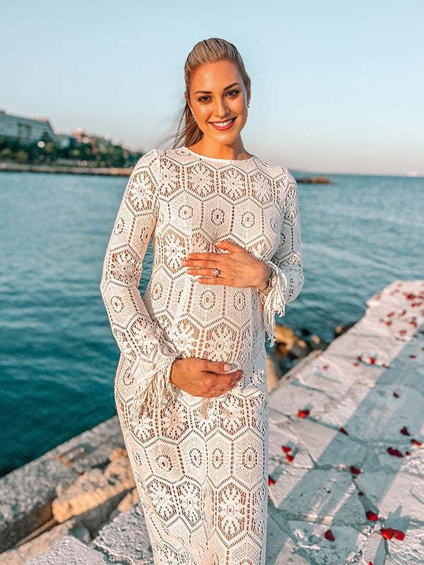 Momyknows White Lace Boho Specially Maternity Photoshoot Maxi Dress