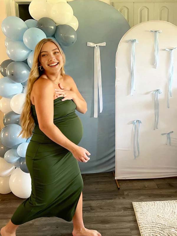 Momyknows Army Green Side Slit Backless Bodycon Maternity Baby Shower Maxi Dress