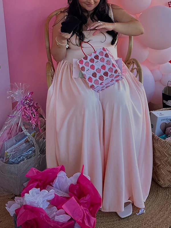 Momyknows Pink Satin Ruched Big Swing Cami Backless Elegant Maternity Maxi Dress