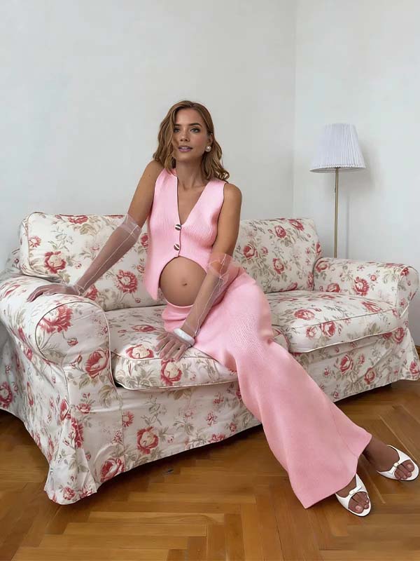 Momyknows Blue 2 Pieces Knit Buttons Photoshoot Maternity Maxi Sweater Dress