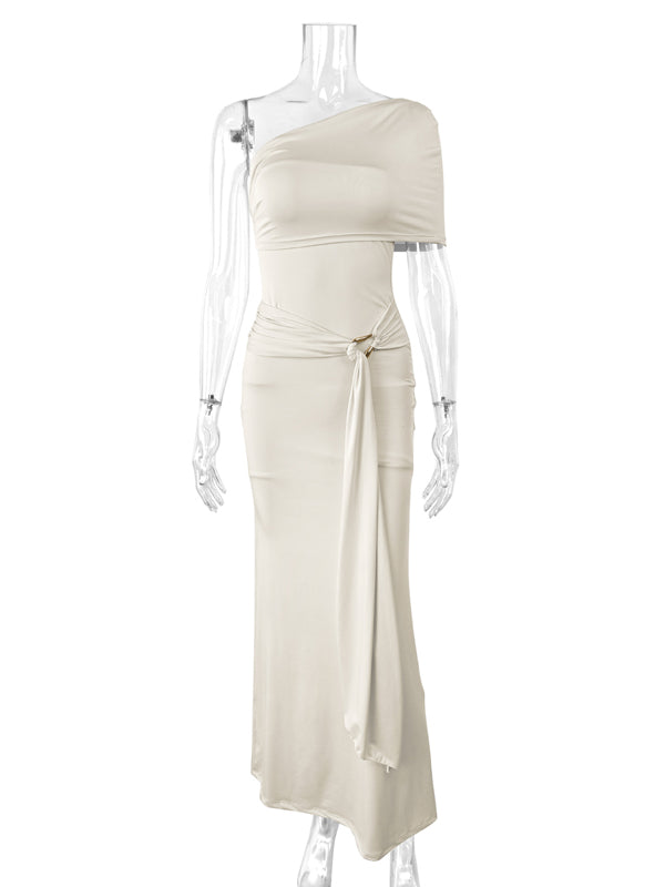 Decoration: Ruched, metal hardwear, draped, irregular, bodycon