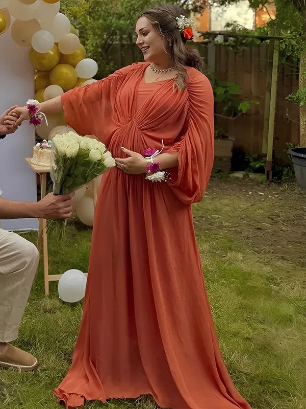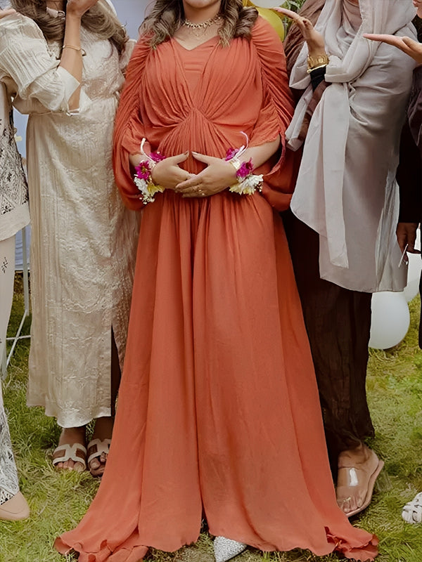 Momyknows Irregular Ruched Big Sing Cape Sleeves Flowy Maternity Maxi Dress