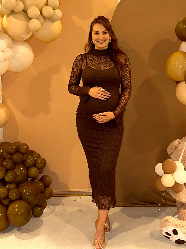 Momyknows Lace Textured Bodycon Two Piece Set Sheer Maternity Maxi Dress
