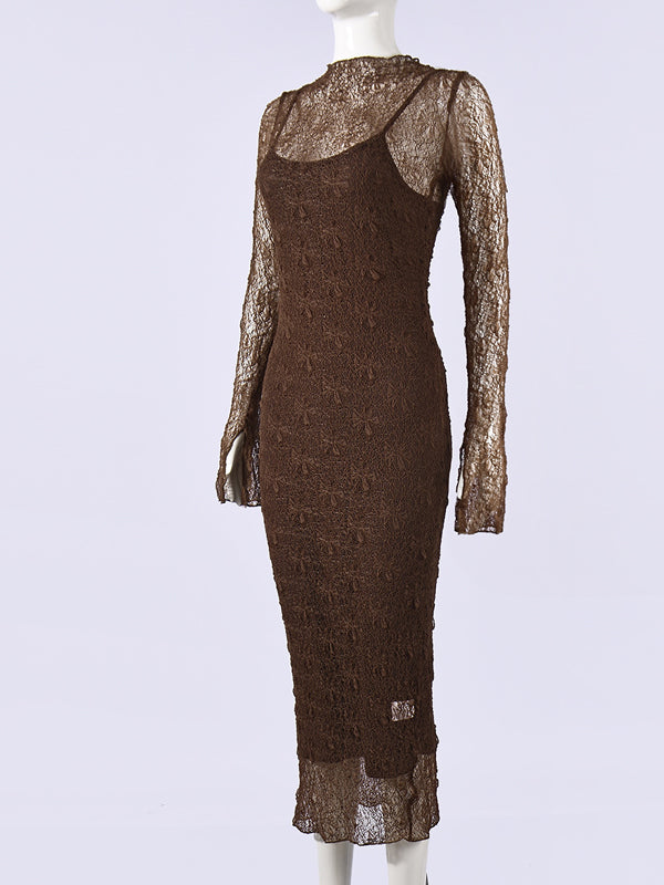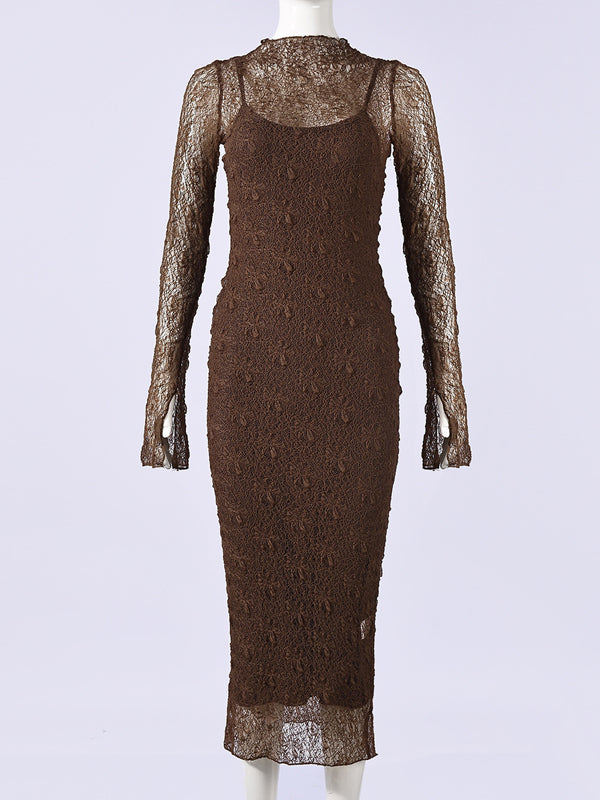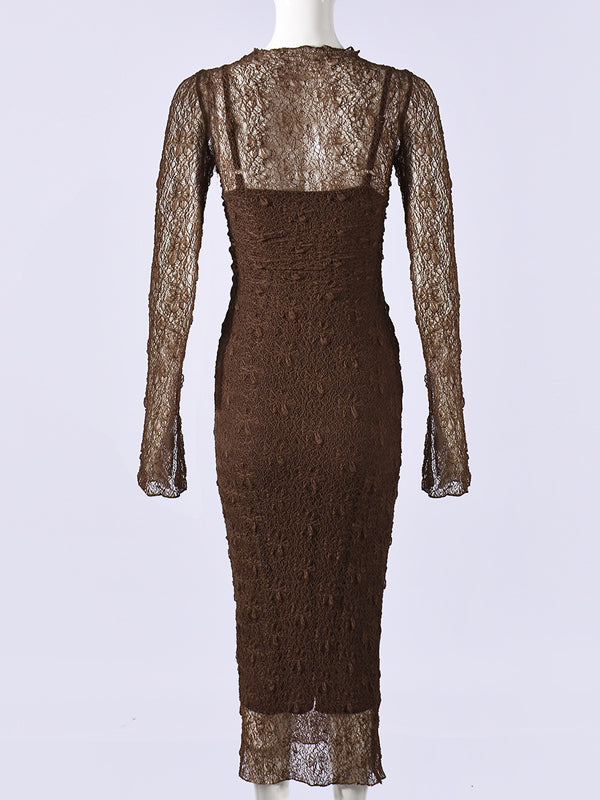 Decoration: Lace, textured, bodycon, two piece set, sheer