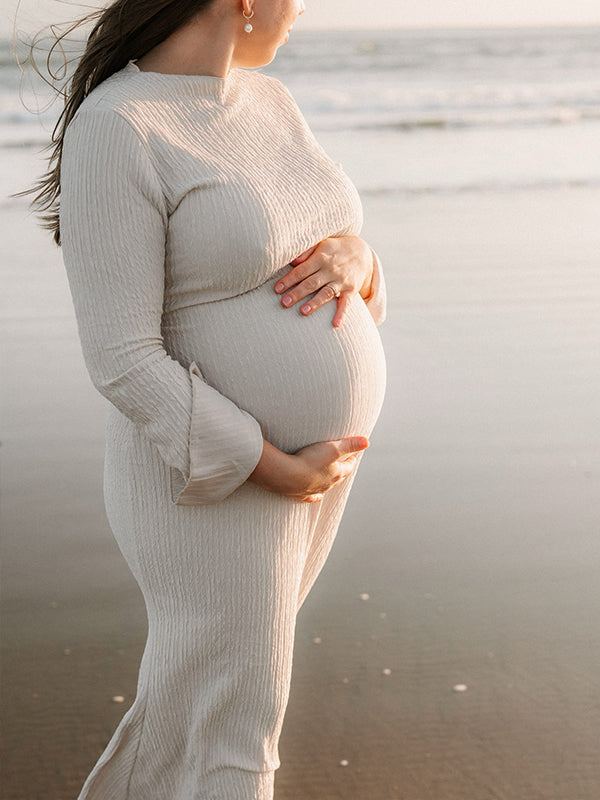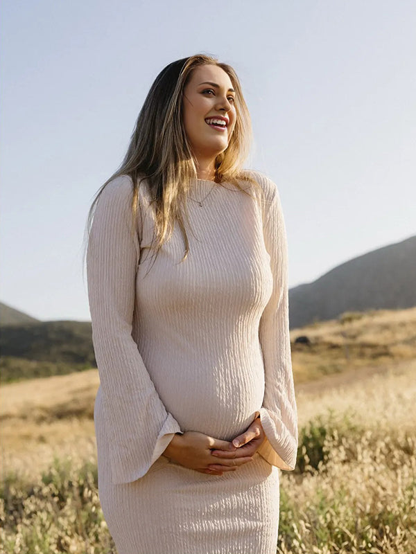 Momyknows Pleated Flare Sleeve Mermaid Baby Shower Maternity Maxi Dress