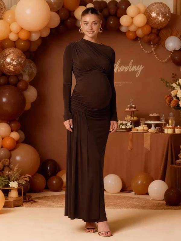 Momyknows Ruched Draped Baby Shower Maternity Maxi Dress