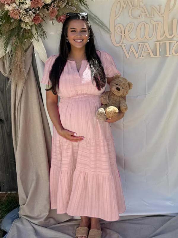 Light Pink Bow Flutter Sleeve Maternity Maxi Dress