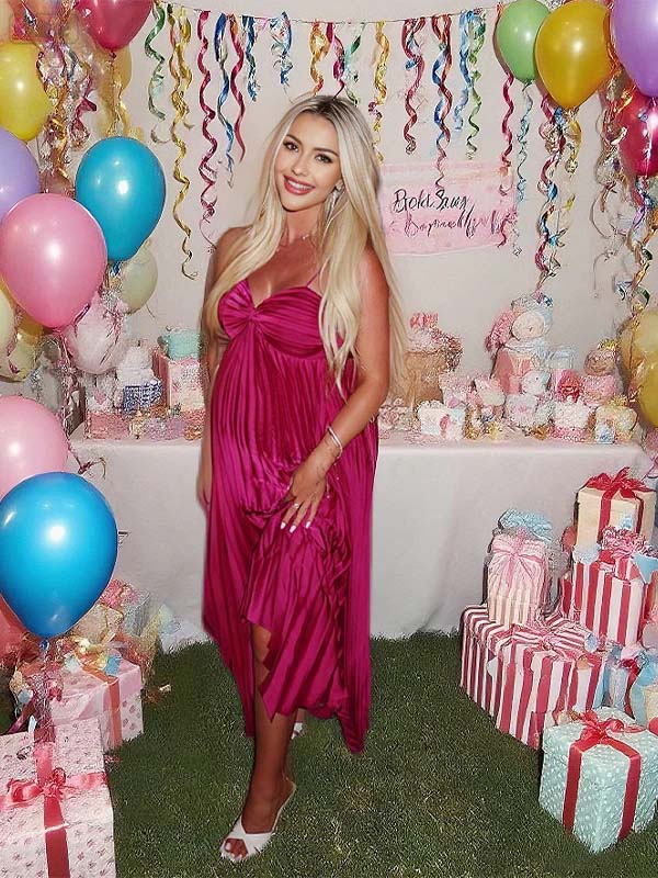 Momyknows Pink Ruched Draped Backless Baby Girl Shower Maternity Maxi Dress