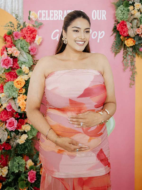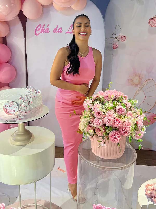 Momyknows Pink 3D Flowers Baby Girl Shower Maternity Mini Dress
