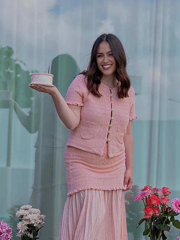 Momyknows Pink Crochet Pleated Button Two Piece Maternity Baby Shower Maxi Dress