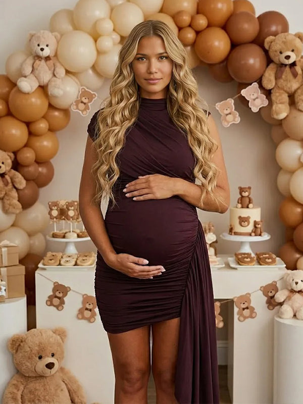 Momyknows Irregular Ruched Ruffle Draped Bodycon Chic Maternity Mini Dress