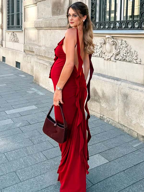 Decoration: Ruffle, falbala, 3d flower, ruched, draped, backless, cami, spaghetti strap, bodycon, mermaid