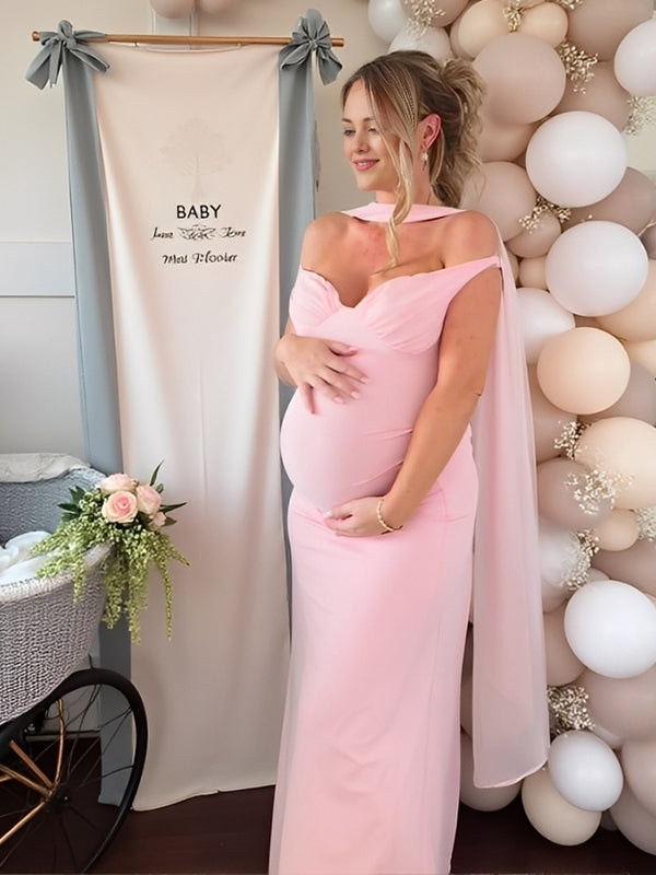 Momyknows Off Shoulder Ruched Sheer Baby Shower Maternity Maxi Dress